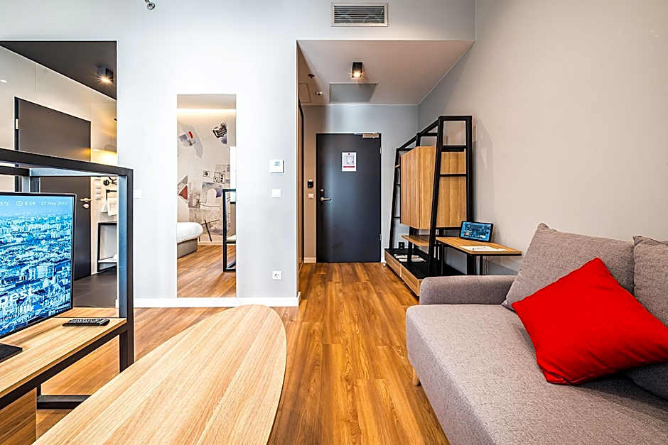 The Up Studio with two separate beds is equipped with a pull-out sofa bed and several facilities that can help you relax perfectly. In addition to basic smart devices, sports equipment and a yoga corner are also included in this room type. Up Studios with twin beds overlook the inner courtyard and have traditional bathrooms with shower.